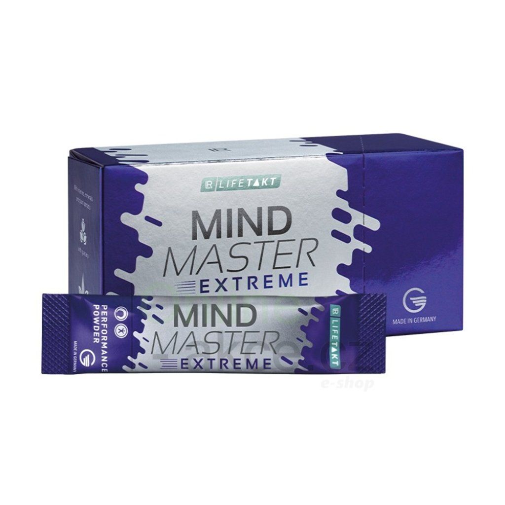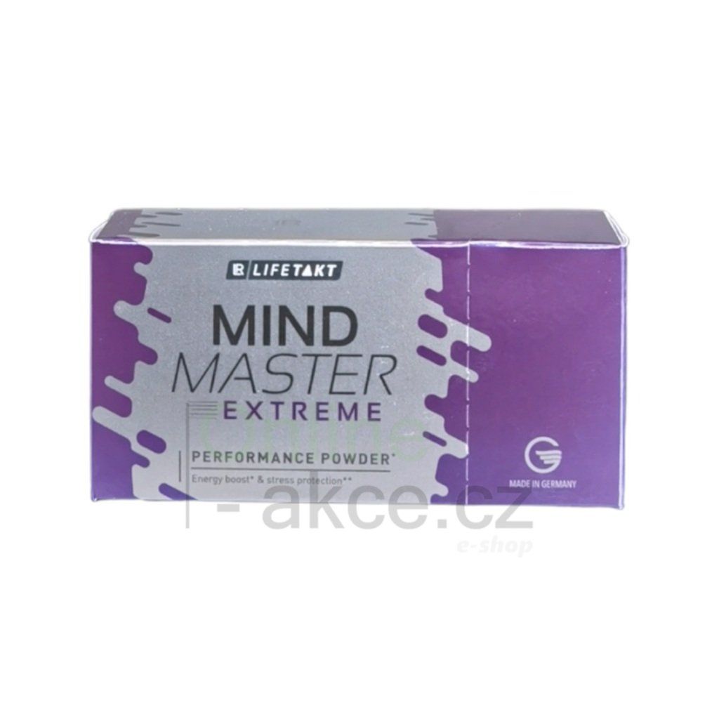 LR LIFETAKT Mind Master Extreme je praktický „to-go“ sáček s instantním práškem, který stačí nasypat přímo na jazyk. Kombinuje 80 mg kofeinu (guarana + zelený čaj) s vitamíny skupiny B, vitaminy C, D, E, selenem, taurinem, BCAA a koenzymem Q10. Bez cukru, se sladidly, s ovocnou příchutí granátového jablka – pro situace, kdy je potřeba být rychle bdělý, soustředěný a výkonný.