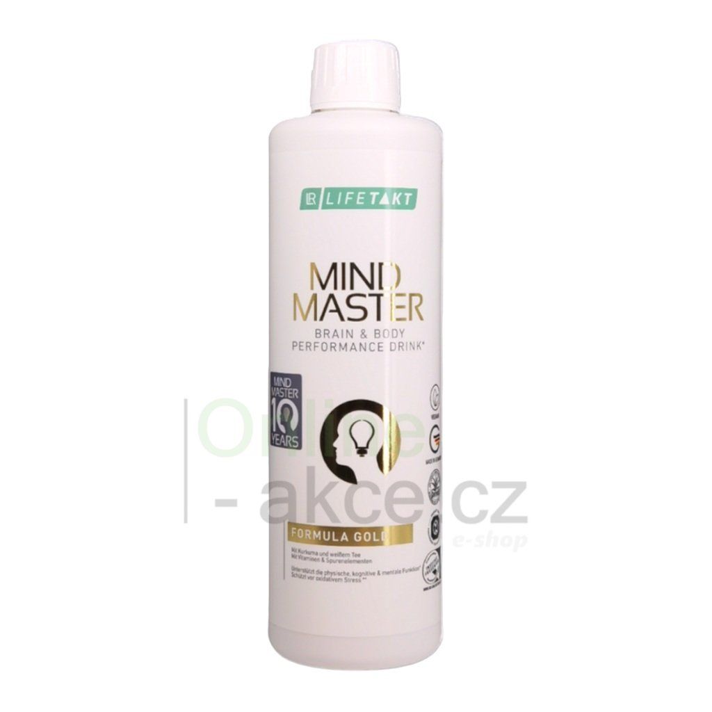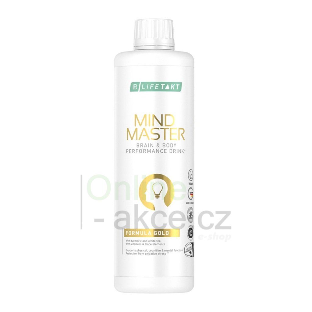 LR LIFETAKT Mind Master Formula Gold je nejpokročilejší tekutá verze Mind Master — vysoce koncentrovaná směs Aloe vera, cukrového melounu, červeného pomeranče, kurkumy, bílého čaje, koenzymu Q10, L-karnitinu a klíčových mikronutrientů, které přispívají k normálním funkcím organismu. Obsahuje 300 % DDD vitamínu D, 100 % vitamínu E, 100 % vitamínu B12, 100 % vitamínu K a významné množství železa a selenu.