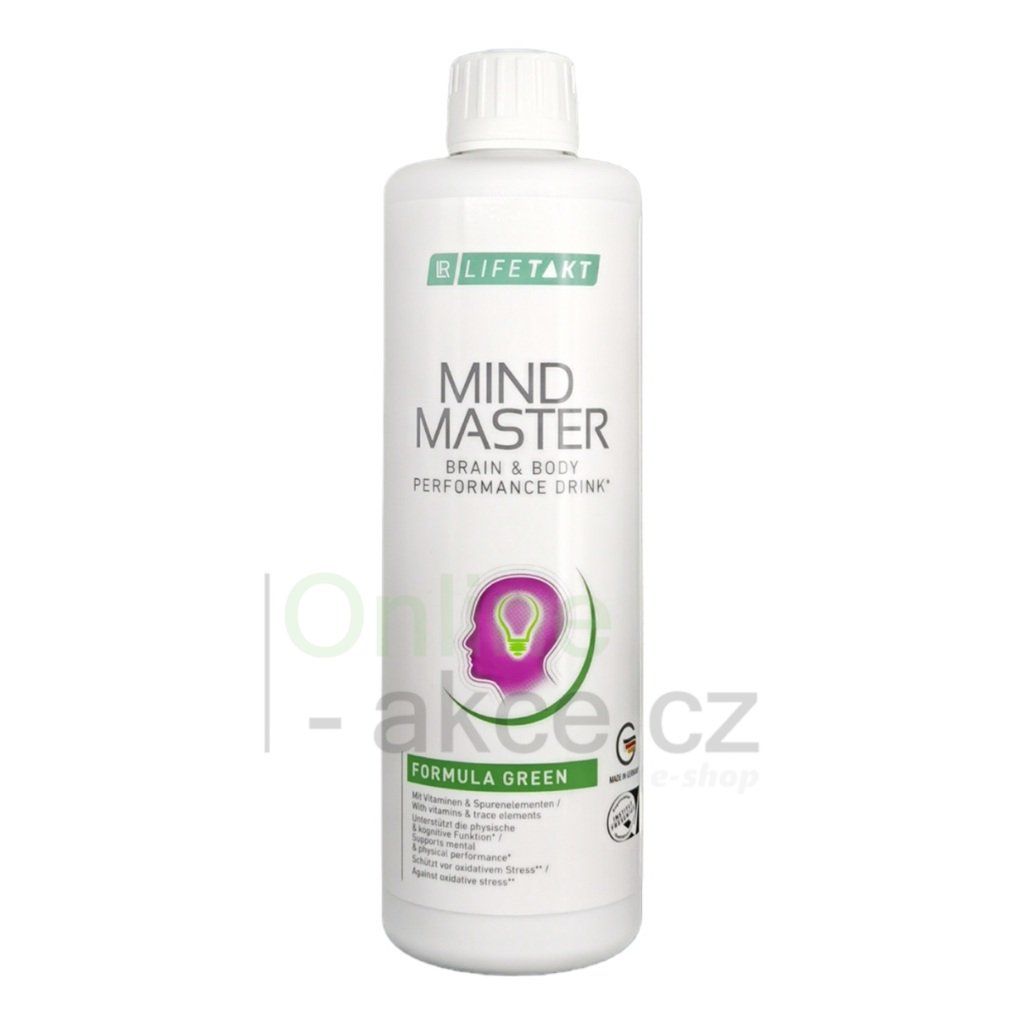 LR LIFETAKT Mind Master Formula Green je tekutý doplněk stravy s vysokým obsahem účinných mikroživin – aloe vera, extrakty ze zeleného čaje a rdesna (resveratrol), L-karnitinem, vitaminy B1, B12, E, kyselinou listovou, železem a selenem. Kombinace složek podporuje energetický metabolismus, psychickou činnost, kognitivní funkce a přispívá k ochraně buněk před oxidačním stresem.
