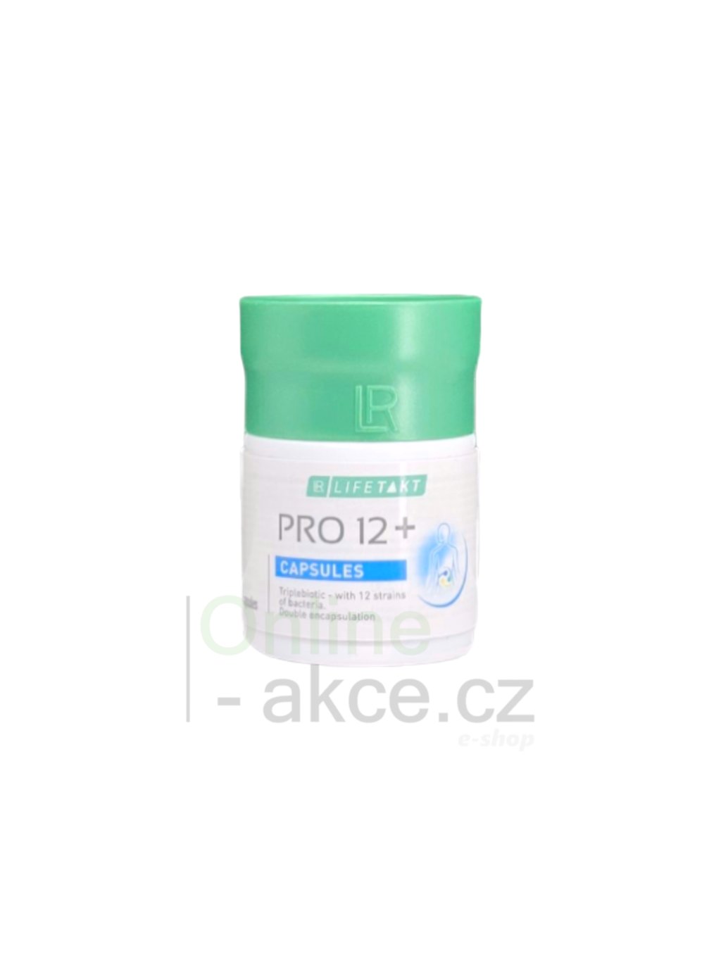 LR Pro 12+ Kapsle jsou moderní doplněk stravy s kombinací dvanácti kmenů probiotických bakterií, prebiotik a postbiotik. Komplex TRIPLEBIOTIC™, vyvinutý společností LR Health & Beauty, vychází z aktuálních poznatků o střevní mikroflóře a je vhodnou součástí vyváženého životního stylu.